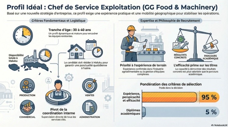 Il est porté à la connaissance du public de la ville-province de Kinshasa que la société « GG Food & Machinery » recrute un Chef de Service Exploitation pour son usine de produits alimentaires BIO située dans la zone Industrielle de Maluku Centre.