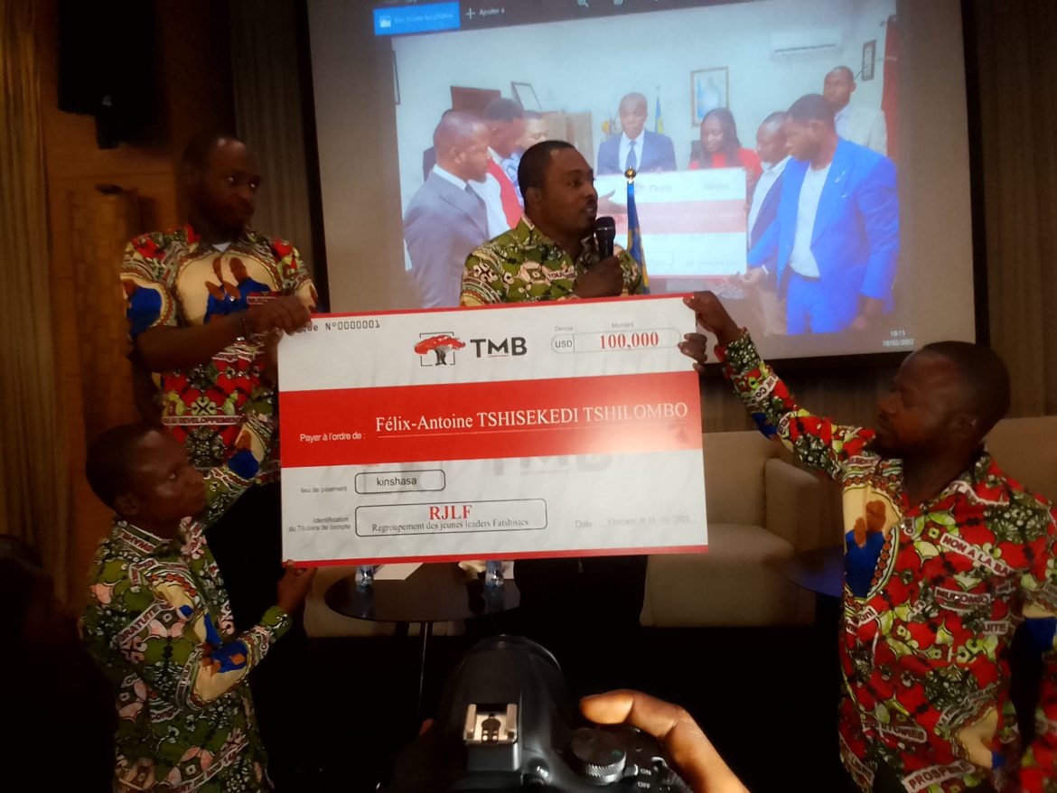 C’est aux yeux du public présent ainsi que de la presse que le président national de cette structure, Faustin Ika a brandi le chèque de 100.000$ signé, RJLF pour la caution de Felix Tshisekedi pour sa candidature. Ce dévoilement a été précédé par la présentation de la structure, de ses objectifs, de sa mission et de son organisation. Notamment, les différents coordonnateurs de la structure venue des provinces ont été présentés à cette occasion.