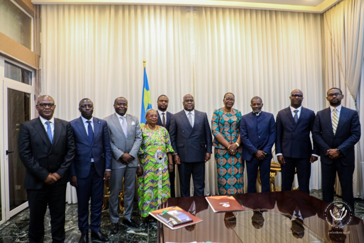 *Le Président de la République, Félix Antoine Tshisekedi Tshilombo, a reçu, dans son bureau de la Cité de l’UA, le mardi 7 mars dernier, le Conseil d’administration de la Gécamines. Nouvellement nommés sur Ordonnance présidentielle, les neuf membres du Conseil d’administration de la Générale des Carrières et des Mines, Gécamines en sigle, sont venus remercier le Chef de l’Etat pour la confiance leur témoignée en les nommant, et lui présenter leur plan de travail en vue de redynamiser ce fleuron national de l’industrie minière en RDC.
