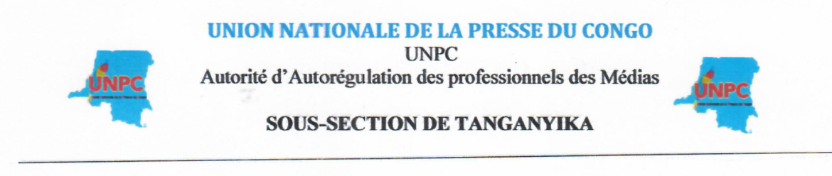 La sous-section de I’UNPC au Tanganyika qui a notamment la mission de défendre la liberté de la presse, les droits et intérêt généraux de la presse, particulièrement ceux de ses membres qualifie ces invectives d’un agissement qui porte atteinte à l’honneur du Journaliste de la province et expose ce dernier au mépris public. Par conséquent et pour éviter un pareil traitement à l’avenir, la sous-section de l’UNPC au Tanganyika tout en étant ahurie de ces propos injurieux: