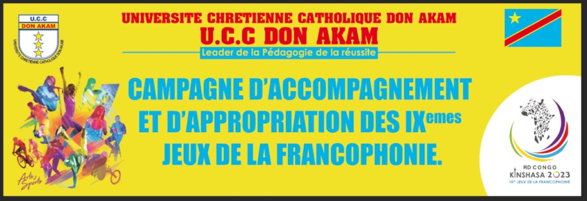 *Sous le coup de 11 heures, samedi 15 juillet 2023, dans son siège administratif situé sur l’avenue By Pass, dans la commune de Mont-Ngafula, l’Université Chrétienne Catholique Don Akam a organisé une double cérémonie axée, d’une part, à une messe d’action de grâce en mémoire du Feu Cardinal Laurent Monsengwo Pasinya, Père Spirituel de cette Alma Mater, et d’autre part, du lancement de la campagne d’accompagnement et d’appropriation des IXès Jeux de la Francophonie qui se dérouleront en RD. Congo, plus précisément, à Kinshasa, la Capitale, du 28 juillet au 6 août 2023.