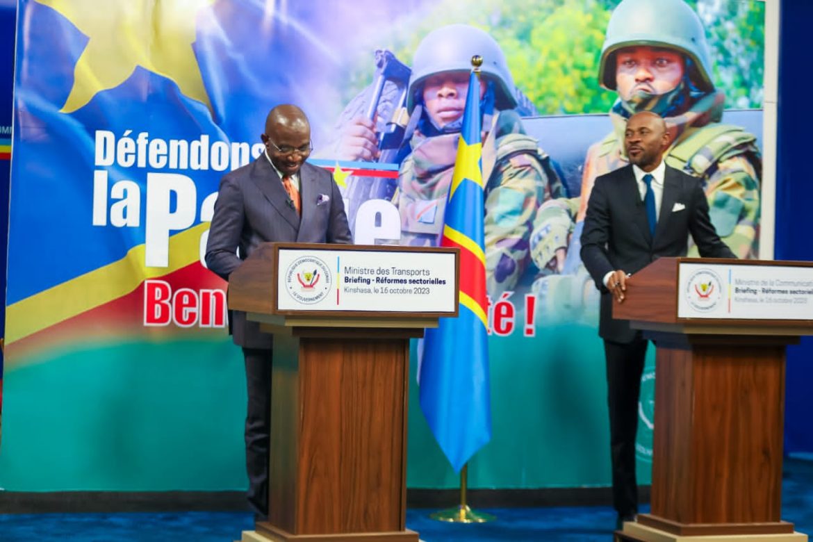 *Intervenu dans un contexte de deuil frappant la Nation congolaise toute entière, le briefing d’hier, lundi 16 octobre 2023, a abordé la question des mesures relatives au naufrage de la baleinière ‘’Mapamboli’’, survenu le samedi 14 octobre à Mbandaka, ainsi que de la mise en œuvre du Programme du Gouvernement dans le secteur des transports et voies de communications. A cet effet, Patrick Muyaya Katembwe, Ministre de la Communication et Médias, Porte-parole du Gouvernement, ainsi que Marc Ekila Likombio, Ministre des Transports, Voies de Communication et Désenclavement, se sont prêtés à cet exercice de devoir de redevabilité.