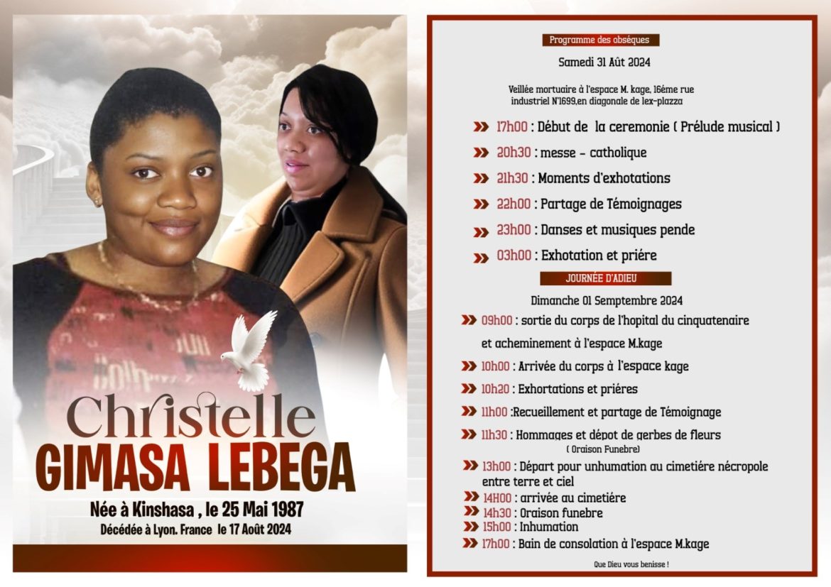 Société Voici le programme des obsèques de Christelle GIMASA Par La Prospérité août 30, 2024 Publié par La Prospérité août 30, 2024 0 commentaire Partager 0FacebookTwitterLinkedinWhatsappEmail Partager 0 FacebookTwitterLinkedinWhatsappEmail La Prospérité article précédent Découvrir le charme millénaire de la magnifique province du Shanxi ! article suivant Une des figures emblématiques de la mode en RDC : Le styliste Cherry Esam fête ses 25 ans de carrière professionnelle You may also like OCC : Dr Etienne Tshimanga Mutombo clôture les travaux de consolidation du PAO... décembre 8, 2025 Modernisation de l’OCC : la DGA Christelle Muabilu inspecte les travaux du futur... décembre 8, 2025 Makala : 61 détenus bénéficient d’une liberté conditionnelle décembre 3, 2025 Pour s’imprégner du drame dans un site minier au Lualaba, Kolwezi : le ministre... novembre 18, 2025 RDC : l’Université de Kikwit crée une cellule de communication pour la visibilité... novembre 18, 2025 Poème Intitulé : QUI SAUVERA LE CONGO ? novembre 14, 2025 Laissez un commentaire Annuler la réponse Enregistrez mon nom, mon adresse e-mail et mon site Web dans ce navigateur pour la prochaine fois que je commenterai.