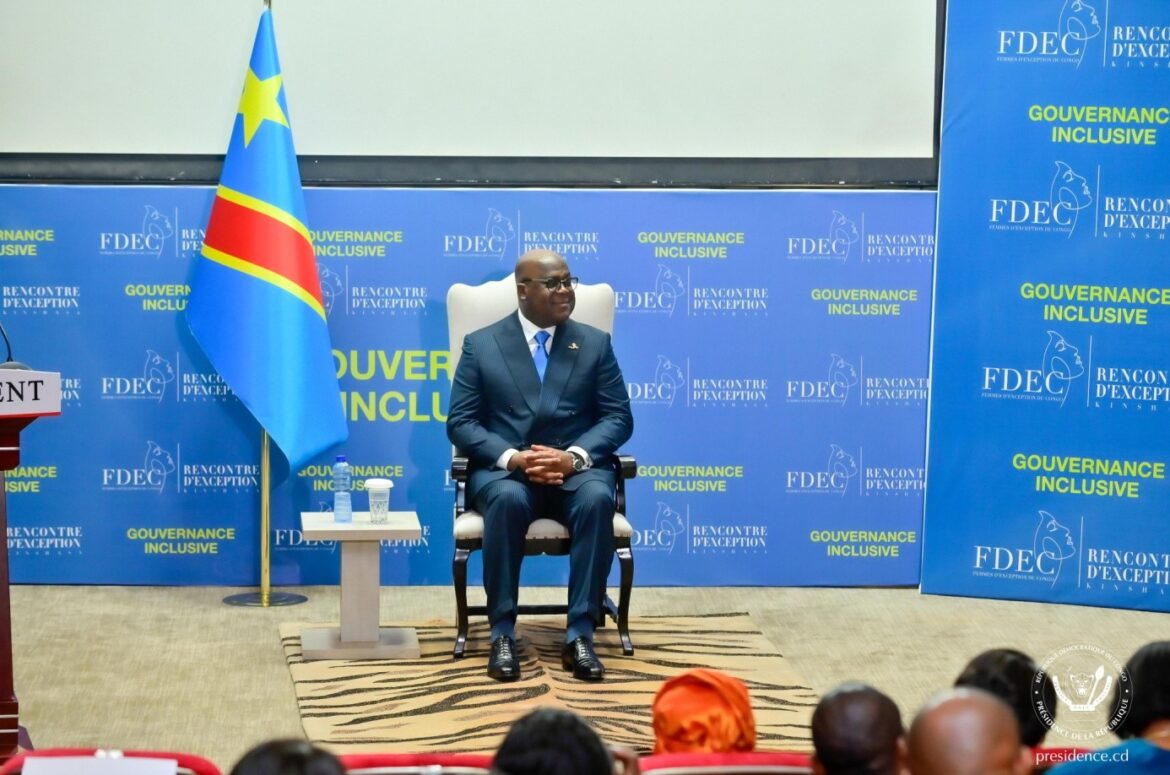 Le Chef de l’Etat, Félix Tshisekedi, a participé, mardi 3 décembre 2024, à Fleuve Congo Hôtel, situé dans la commune de la Gombe, à la première conférence organisée par les ‘’Femmes d’exception’’, structure connue pour son combat pour le bien-être de la gent féminine, en RD. Congo. Cette conférence était placée sous le thème : Gouvernance inclusive. Lors de sa prise de parole, le Président Félix Tshisekedi a salué la tenue de cette activité combien importante, réitérant son engagement ferme et sa détermination totale à mettre en place les efforts nécessaires en vue de combattre, jusqu’au bout, les violences faites aux femmes en République démocratique du Congo.