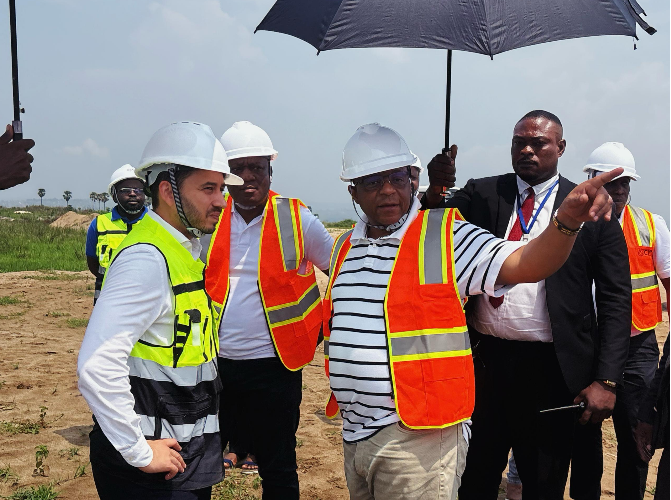 Après une séance de travail technique avec les équipes d’ARISE, la délégation du FPI s’est rendue sur le site afin de constater l’état d’avancement des travaux. Cette descente de terrain a permis au Directeur Général du FPI de palper du doigt la réalité du chantier et d’évaluer concrètement le niveau d’exécution des infrastructures en cours.