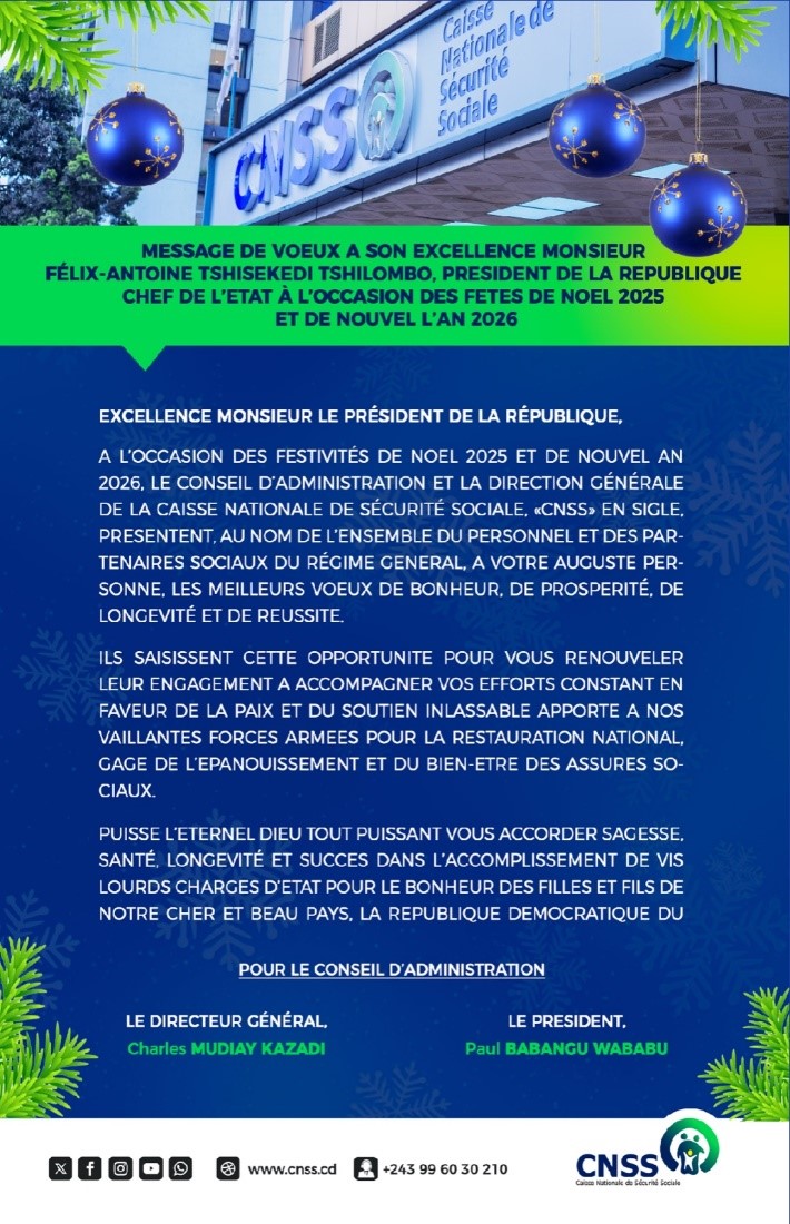La Une Par La Prospérité janvier 9, 2026 Publié par La Prospérité janvier 9, 2026 0 commentaire Partager 0FacebookTwitterLinkedinWhatsappEmail . Partager 0 FacebookTwitterLinkedinWhatsappEmail La Prospérité article précédent Année de renaissance! You may also like Décryptage du Succès de la Chine à travers les plans quinquennaux janvier 9, 2026 La Diaspora : un pont naturel et stratégique entre le Canada et l’Afrique janvier 9, 2026 RDC-Rwanda : Joao Lourenço passe aux actions ! janvier 9, 2026 Aménagement du Territoire, Nouveaux locaux pour l’ONAT : Jean-Lucien Bussa remet officiellement les clés ! janvier 9, 2026 RDC : Guillaume Ngefa et Patrick Muyaya annoncent des avancées dans la bataille... janvier 9, 2026 Option réaliste face à l’agression rwandaise, Léon Odéric Nyembo : ‘’Rien ne remplace l’Accord-cadre... janvier 9, 2026 Laissez un commentaire Annuler la réponse Enregistrez mon nom, mon adresse e-mail et mon site Web dans ce navigateur pour la prochaine fois que je commenterai.