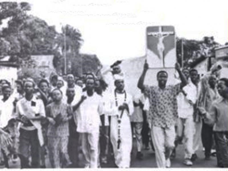 Face à cette impasse, des laïcs catholiques prennent l’initiative d’organiser une marche pacifique le 16 février 1992. L’objectif est clair : réclamer la reprise des travaux de la Conférence nationale souveraine et affirmer le droit du peuple à une transition démocratique effective. La mobilisation est importante. Dans plusieurs paroisses de la capitale, des fidèles se rassemblent pour marcher dans le calme, portés par des chants religieux et des messages appelant à la paix et à la justice.